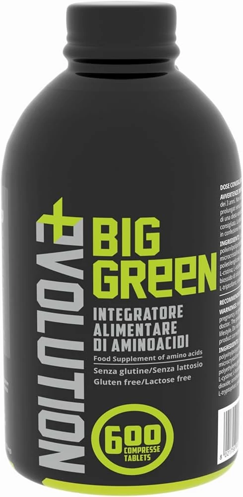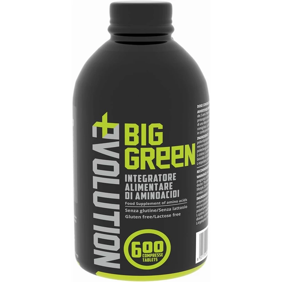 PENSATA PER CHI SPINGE OLTRE I LIMITI Integra quando l’apporto proteico cala o l’allenamento sale di livello. BIG GREEN Evolution porta in un’unica compressa i nove aminoacidi essenziali, arricchiti con Ornitina α-chetoglutarato (OKG), Acido L-Aspartico e L-Cistina: un profilo pensato per sostenere il fabbisogno nutrizionale di sportivi e di chi segue regimi alimentari specifici. Grazie a migliori rapporti tra aminoacidi e l’addizione di ulteriori princìpi, BIG GREEN Evolution aiuta a supportare il metabolismo e a promuovere il naturale equilibrio energetico delle cellule.